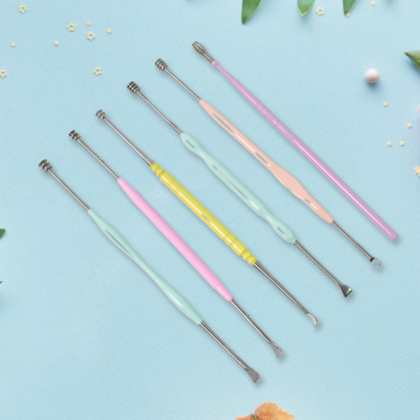 The 7-Piece Stainless Steel Earwax Removal Kit is designed for safe, effective, and comfortable ear cleansing. Made from quality, rust-resistant stainless steel, each tool features an anti-slip handle for easy use. The kit includes uniquely designed spiral and spring cleaners that massage and relieve itching in the ear canal, providing a deep clean without pushing wax further in. Regular cotton swabs often worsen earwax buildup, but this kit helps to remove wax safely and effectively.